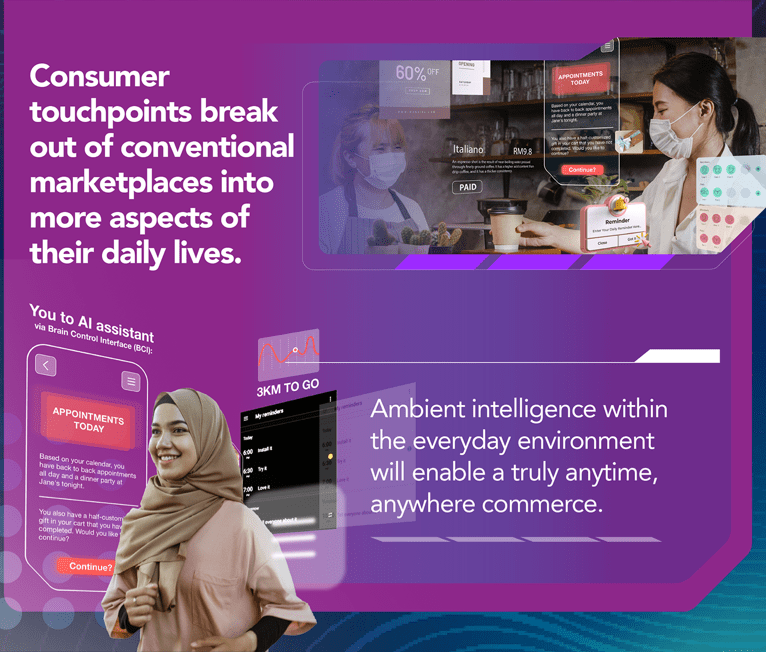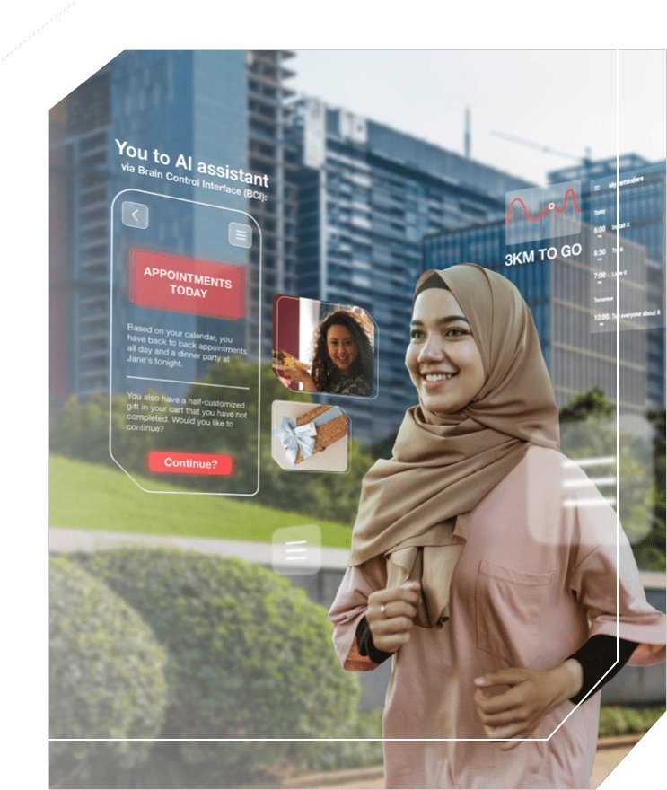 With one swift gesture, an interactive visual board pops up in your peripheral vision. You quickly perform some finishing touches to customise a personalised gift for Sara.