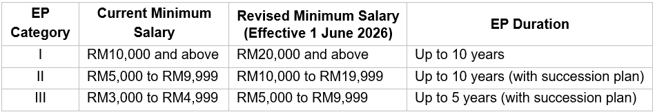 1. Revised Employment Pass (EP) Salary Requirements and Duration