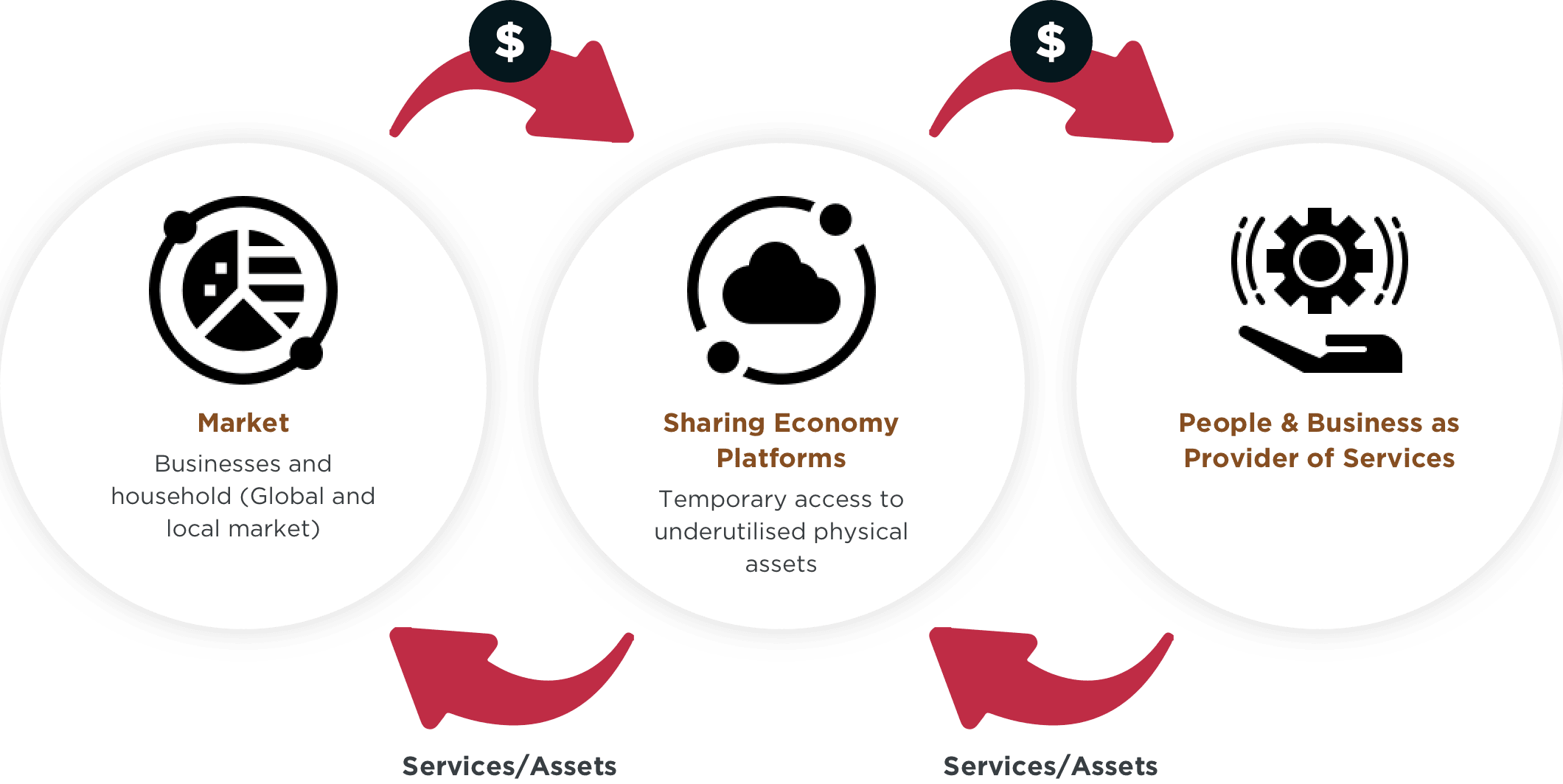 Sharing Economy platforms facilitate transactions between market demand and the providers of services, which are people (freelancers or gig workers and businesses).
